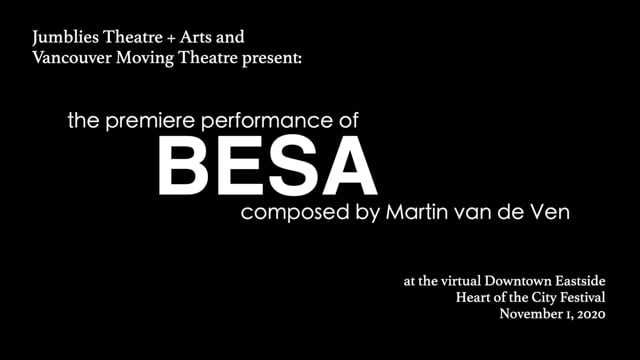 - premier online performance of a new work, Besa, composed by Martin van de Ven, conceived of by Ruth Howard, choreographed by Michelle Silagy and performed by over 20 artists, musicians and community members.